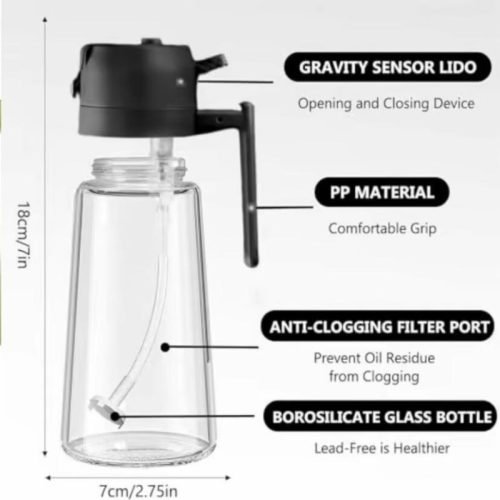 • Spray Function: Easily spray oil with just a press. Ideal for greasing pans, salads, or air fryers with even coverage.
