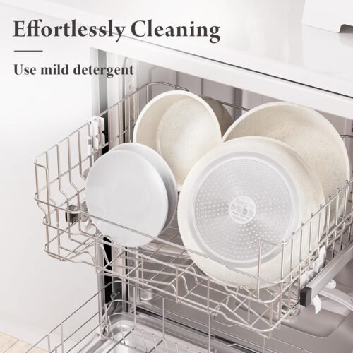 • Healthy Ceramic Coating: Made of natural ceramic, our kitchen cookware set is Teflon-free and guarantees no PFAS, PTFE, PFOA, lead, or cadmium. Ideal choice for safety-conscious families, especially those with babies
