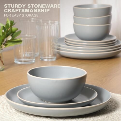 - STYLISH DESIGN: a modern simplicity with an off-white edge along the rim brings style into every kitchen. These plates will make a statement. The coupe-shaped edges allow for a stackable and space saving benefit.