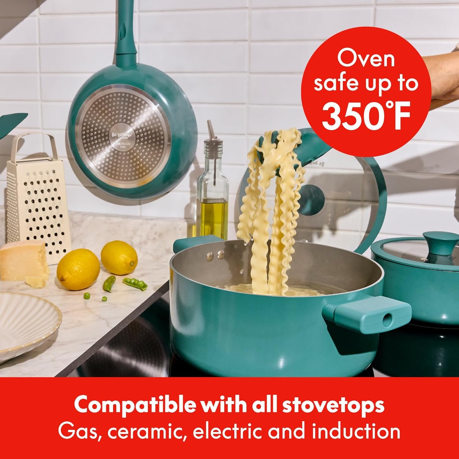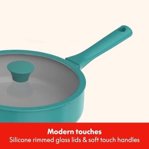 • TRENDY & PRACTICAL DESIGN: Our modern, colorful pots and pans bring a stylish touch to your kitchen, while interior measurement markings, secure silicone-rimmed lids, and stay-cool comfort-grip handles add functionality to help you cook like a pro